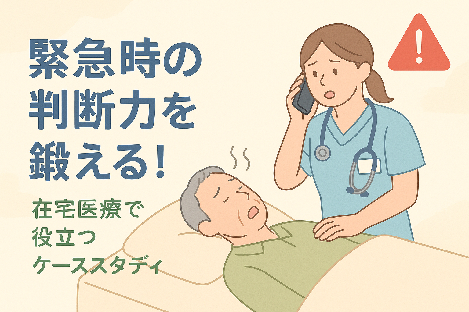 在宅医療の緊急場面で必要なのは、適切なアセスメントと迅速な判断力。日頃からケースを想定して学ぶことで、“迷わず動ける看護師”へ成長できます。訪問看護の現場で役立つ判断力を、一緒に磨いていきましょう。